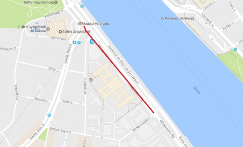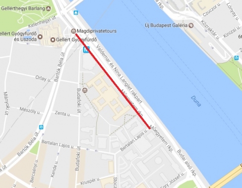 Műegyetem felső rakpart a Szent Gellért tér és a Bertalan Lajos utca között.