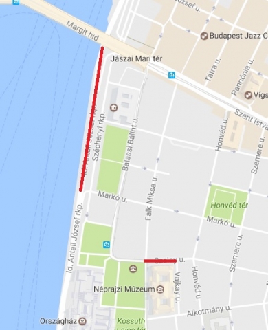 Pesti alsó rakparton a Markó utcai lehajtó és a Margit híd között