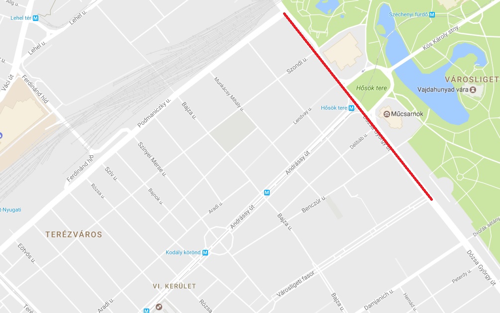 Dózsa György út a Podmaniczky utca és a Városliget fasor között.