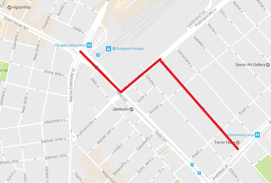 Nyugati tér – Teréz körút – Podmaniczky utca – Csengery utca – Andrássy út 60. szám útvonalat,