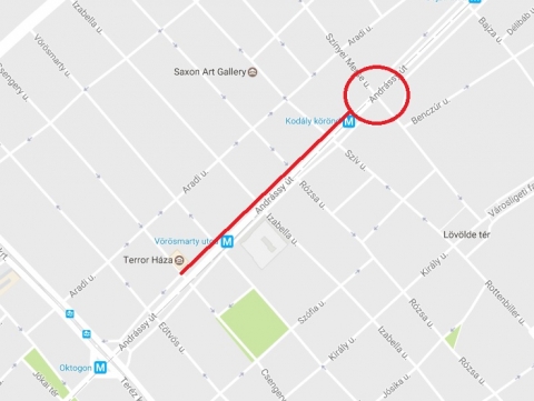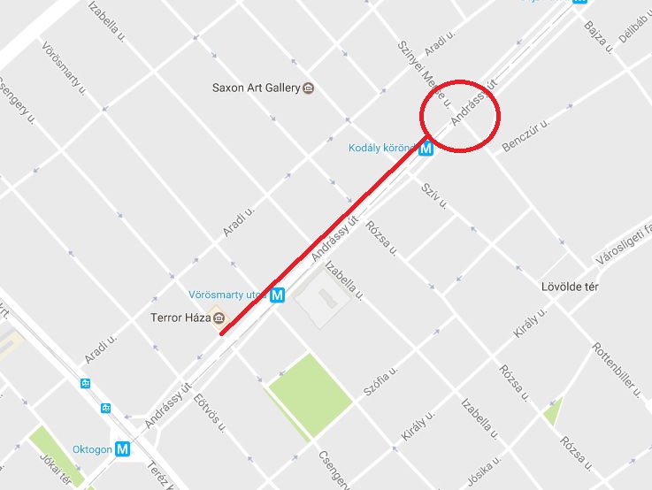 Andrássy út 60. szám – Andrássy út szerviz útja – Kodály körönd útvonalat.