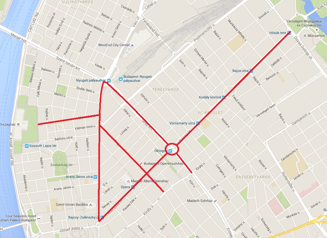 Bajcsy-Zsilinszky út a Nyugati tér és az Andrássy út között.