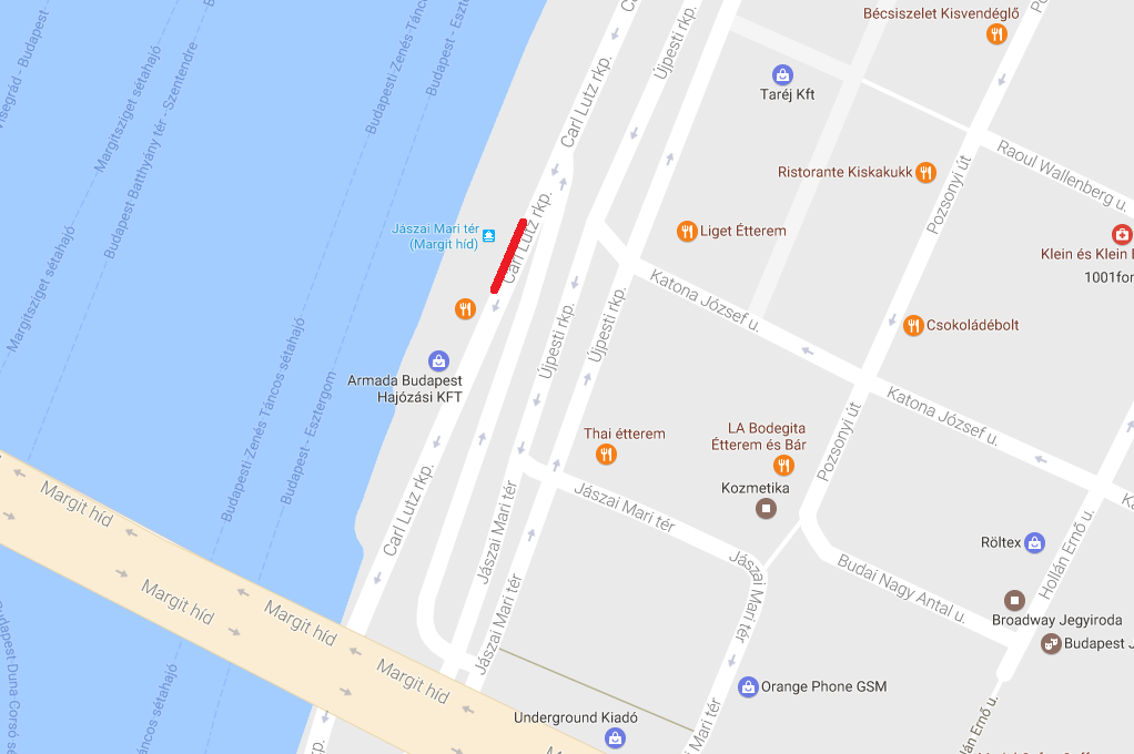 Carl Lutz rakpart Jászai Mari tér I. számú kikötő (Attila rendezvényhajó előtt).