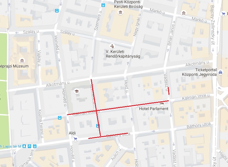 Szemere utca Báthory utca és Alkotmány utca közötti szakaszon,