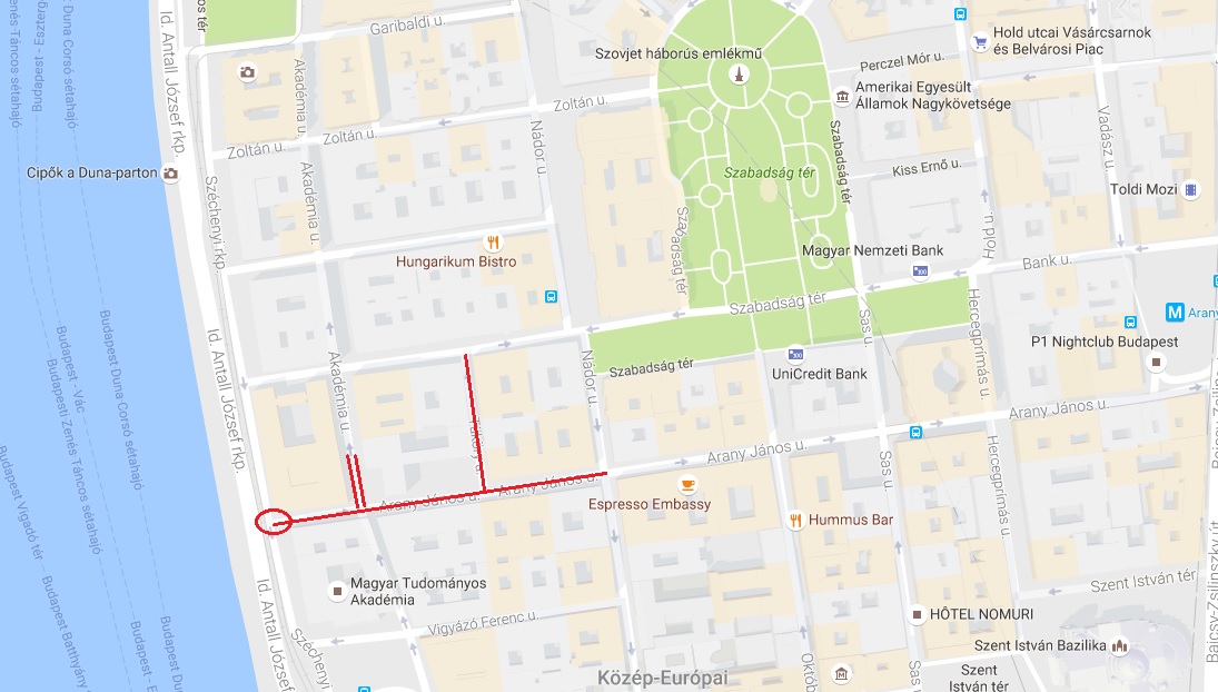 Filmforgatás miatt ideiglenes forgalomkorlátozás lesz 2016. november 18. és november 20. között Budapest V. kerületében.