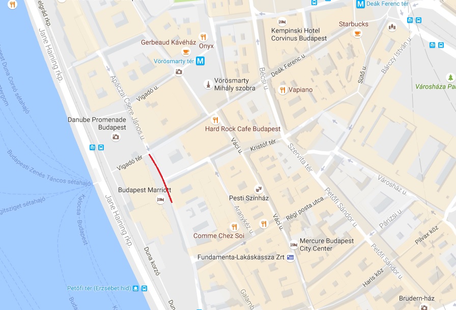 Apáczai Csere János utcában a Marriot Hotel oldalában.