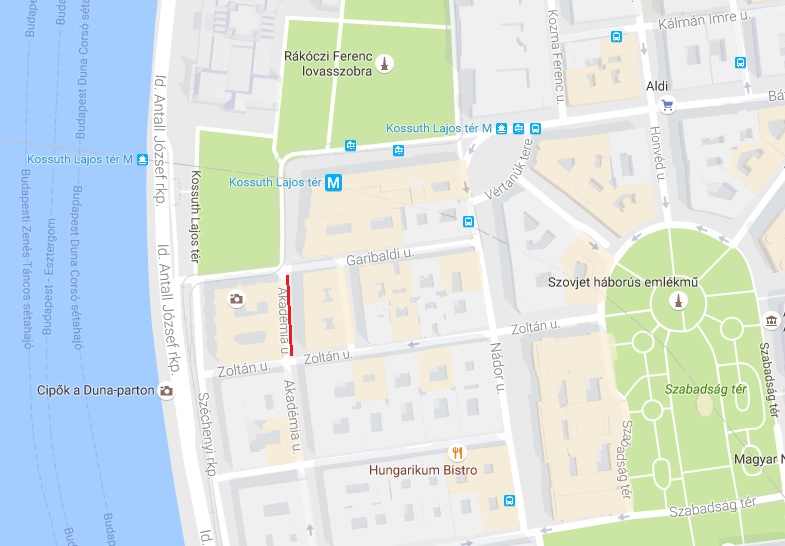 Akadémia utcában a Zoltán utca és a Garibaldi utca között a jobb oldalon.