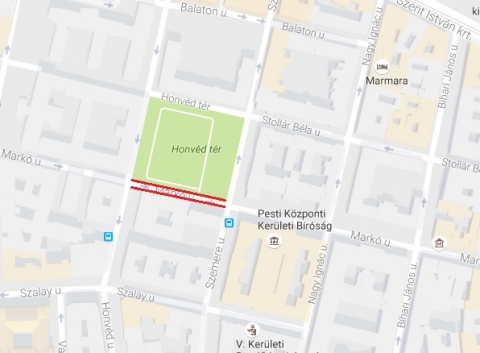 Markó utca mindkét oldalán a Honvéd utca és a Szemere utca között.