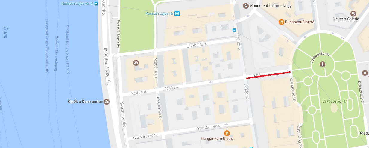 Zoltán utca páratlan oldalán a Nádor utca és a Szabadság tér között,