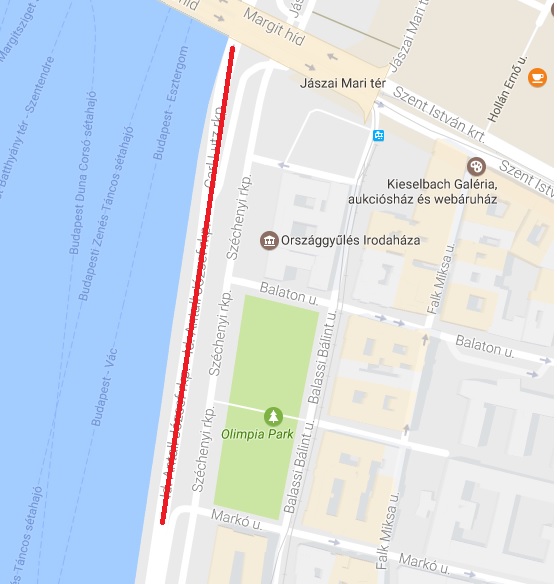 Pesti alsó rakparton a Markó utca és a Margit híd között.