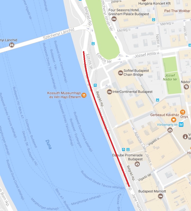 Jane Haining rakpart az Eötvös tér és a Vigadó tér között.