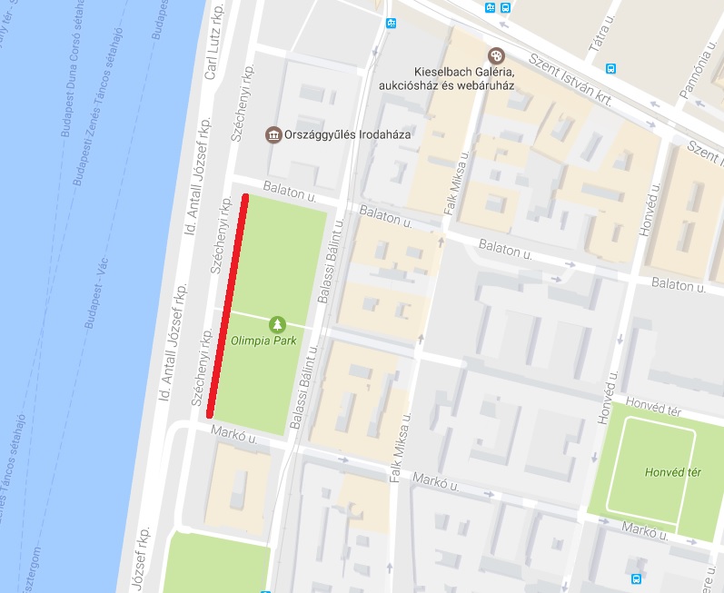 Olimpiai Park melletti parkolóban 15 gépjármű részére fenntartott helyen.