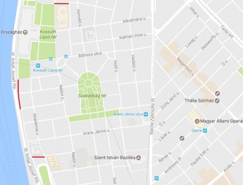 Demonstráció miatt ideiglenes forgalomkorlátozás van érvényben 2017. május 29-én Budapest V. kerületében.