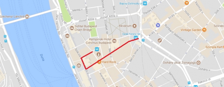Apáczai Csere János utca mindkét oldalán a Vigadó utca és a Deák Ferenc utca között,