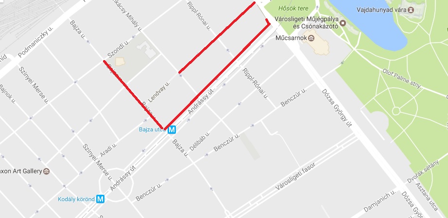 Bajza utca mindkét oldalán az Andrássy út és a Szondi utca között