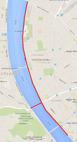 Pesti alsó rakpart (Salkaházi Sára rakpart, Pesti alsó rakpart, Jane Haining rakpart, id. Antall József rakpart, Carl Lutz rakpart) a Közraktár utca és a Szent István park között.
