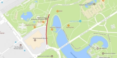 Állatkerti körút mindkét oldalán a Hősök tere és az Állatkert főbejárata előtt található gyalogosátkelőhely között, (Gundel és a Robinson éttermek parkolójában is),