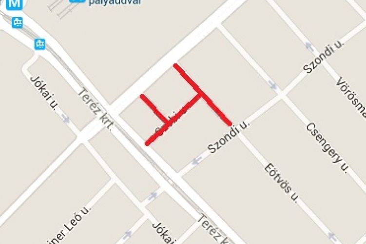 Eötvös utca Szondi utca és Podmaniczky utca közötti szakaszán,
