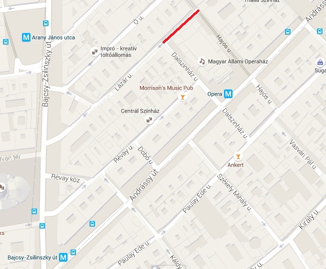 2015. július 31-én 18 óráig a Budapest VI., Lázár utca, Hajós utca és Dalszínház utca között.