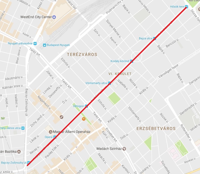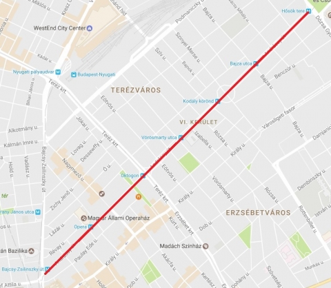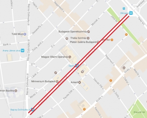 Andrássy út a Bajcsy - Zsilinszky út és a Hősök tere között.
