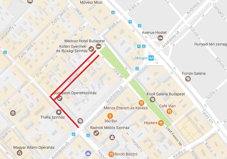 Nagymező utca 16. szám előtt 25 méteres szakaszon.