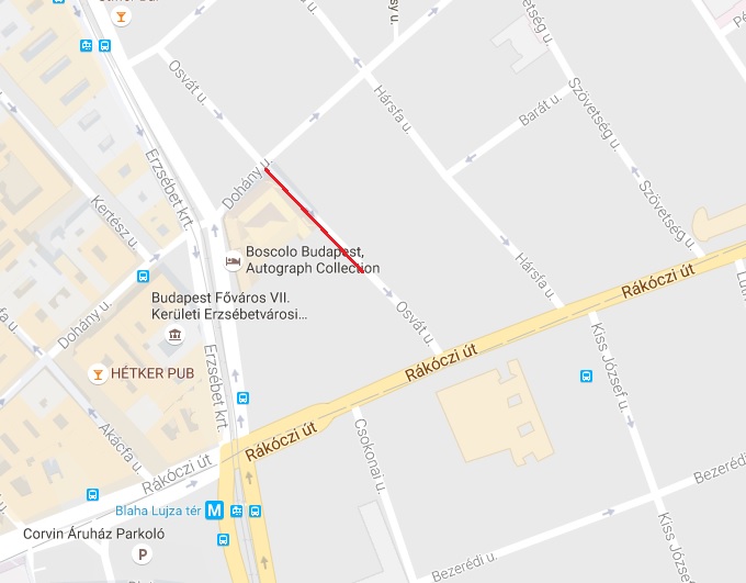 Osvát utca páros oldalán a Dohány utcától a Rákóczi út felé 80 méter hosszan.