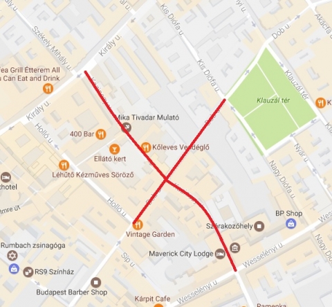 Kazinczy utcát a Király utca és a Wesselényi utca között.