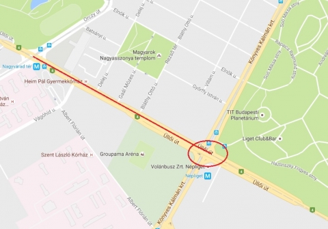 Üllői út - Könyves Kálmán körút kereszteződésétől a Nagyvárad tér irányába,