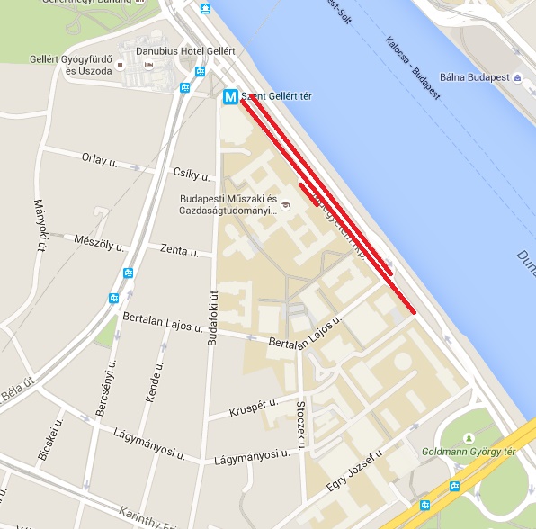Műegyetem rakpart 3-7. szám előtti parkolósávban, járdán és úttesten.