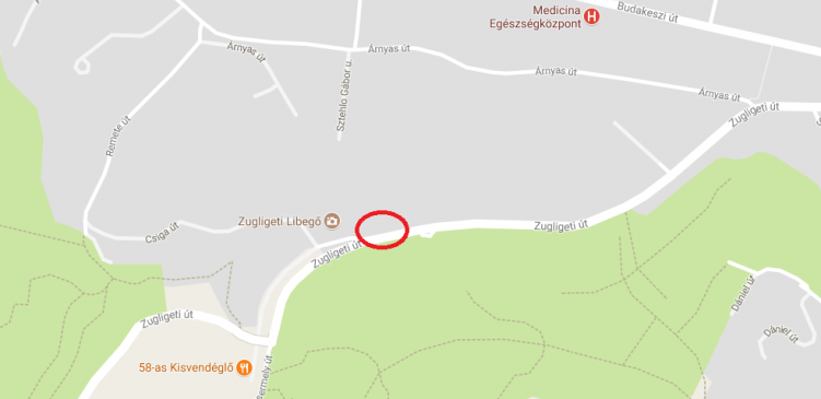 Zugligeti út 93. szám előtti parkoló teljes területén.