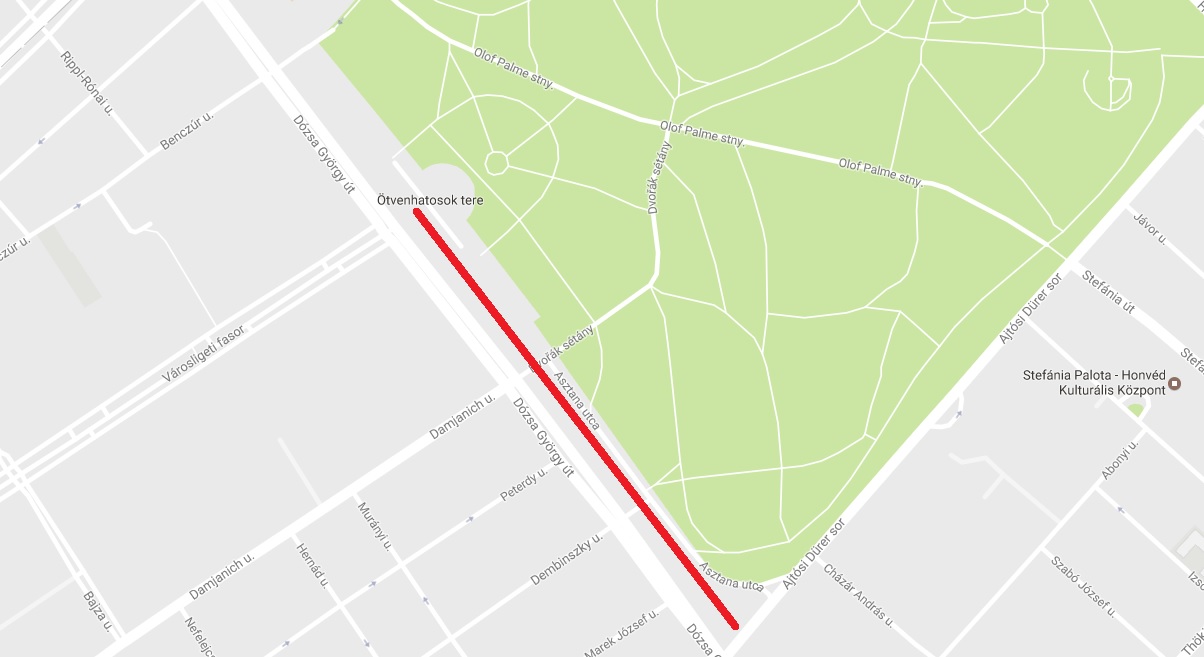 Felvonulási téren az '56-os emlékmű és az Ajtósi Dürer sor között.