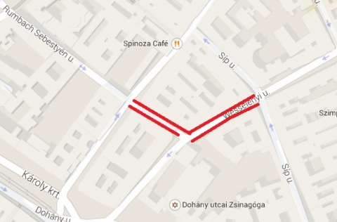 Wesselényi utca mindkét oldalán a Dohány utca és a Síp utca között,