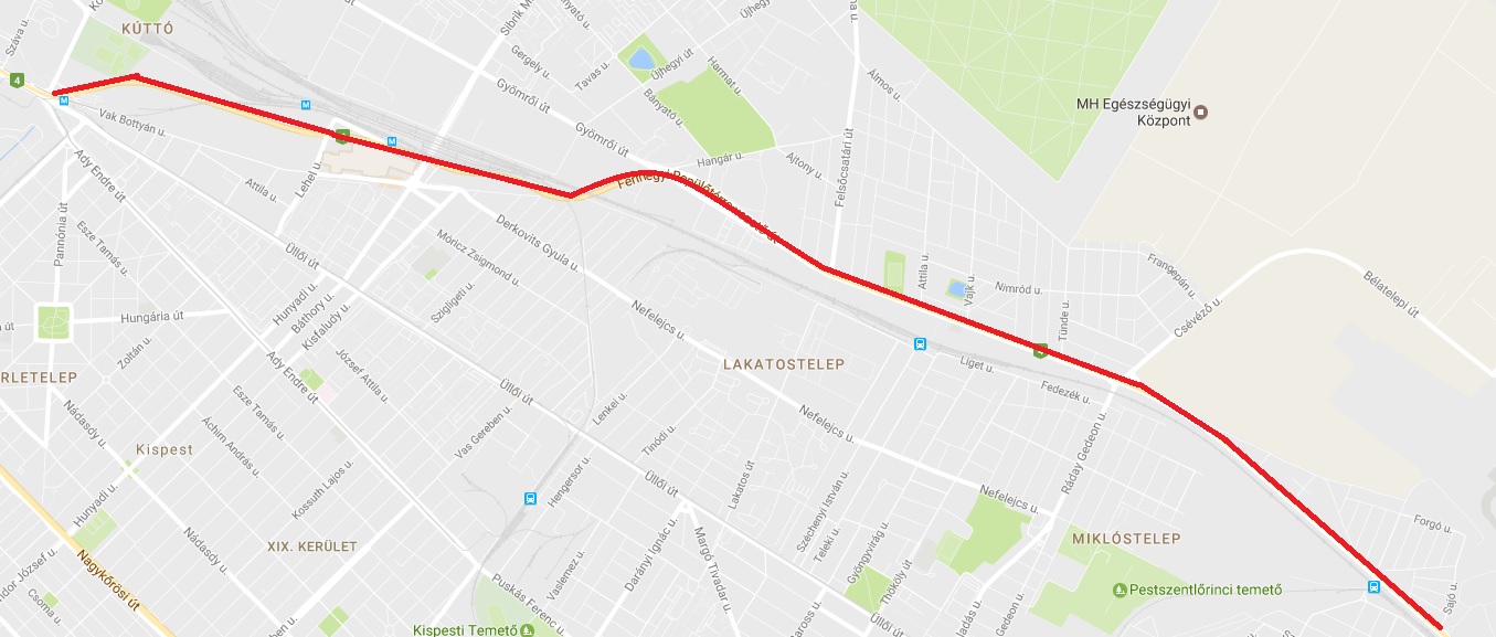 A Ferihegyi Repülőtérre vezető út teljes hosszán a Határ úti felüljárótól a Sajó utcai kereszteződés közötti szakaszon.
