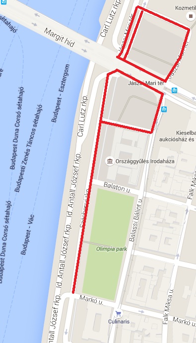Jászai Mari téren a Képviselői Irodaház mellett mindkét oldalon,
