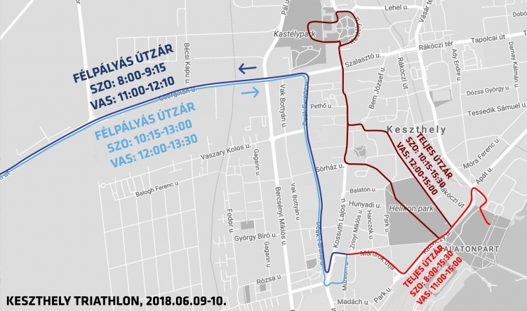 A „Keszthely Triathlon” és a Sunset Run futóverseny miatt forgalomkorlátozásra kell számítani Zala megye területén 2018. június 9-én és június 10-én.