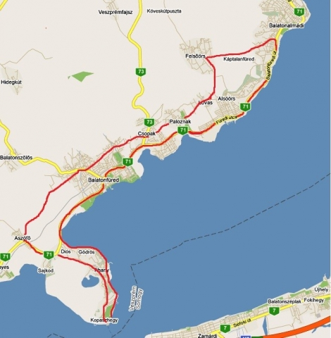 A járműforgalom elől szakaszosan és időszakosan elzárják 2017. június 10-én 12 órától az Alsóörs (Endrődi utca) – Csopak – Balatonfüred – Tihany – Aszófő – Balatonfüred – Csopak – Paloznak – Lovas – Felsőörs – Balatonalmádi – Alsóörs (Európa Kemping) útvonalon az úttest menetirány szerinti jobb oldali forgalmi sávját.