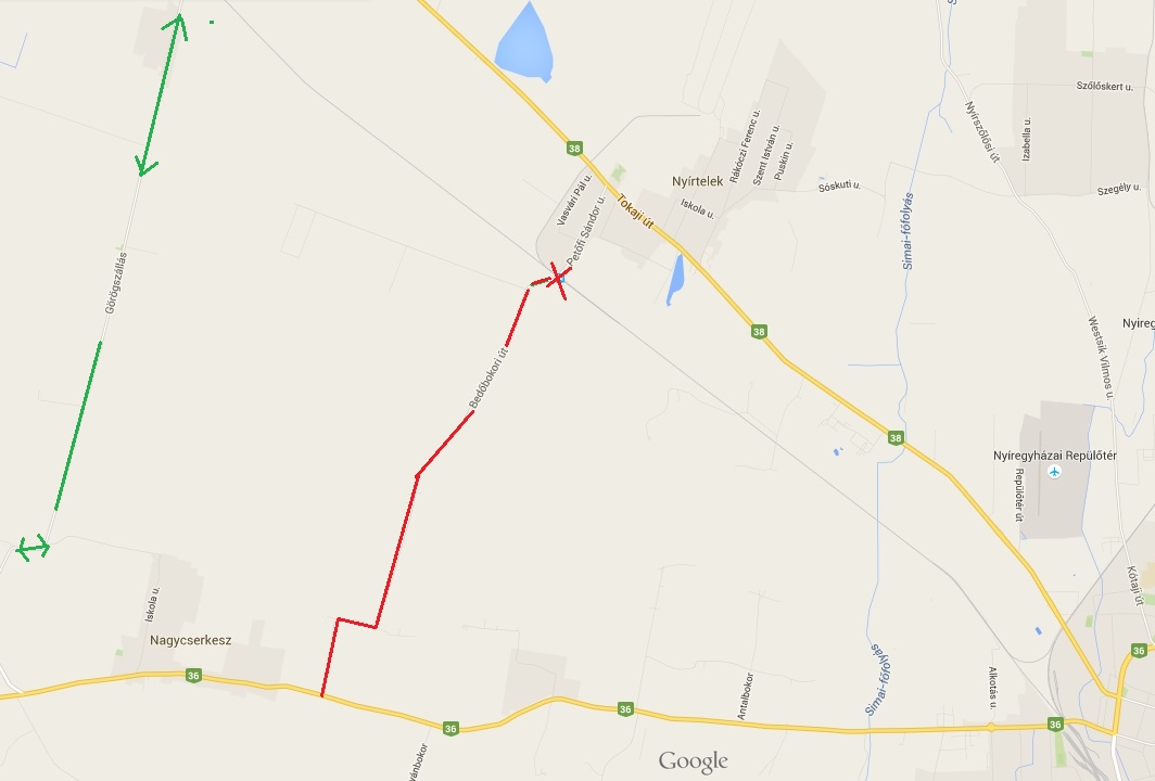 A Szabolcs-Szatmár-Bereg Megyei Rendőr-főkapitányság tájékoztatja a közlekedőket, hogy a Nyírtelket és Nagycserkeszt összekötő 3636. számú út vasúti átjárójának átépítése miatt az érintett útszakaszt a kivitelező 2015. augusztus 14-én 19 óra 15 perctől 2015. augusztus 17-én 4 óra 30 percig teljes szélességében lezárja (a térképen pirossal jelölve). A lezárt vasúti átjárót Varjúlapos tanya- Belegrád felé lehet elkerülni (zölddel jelölve).