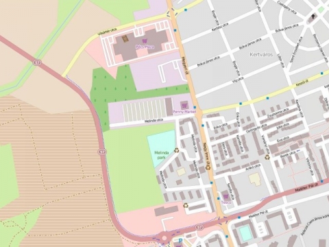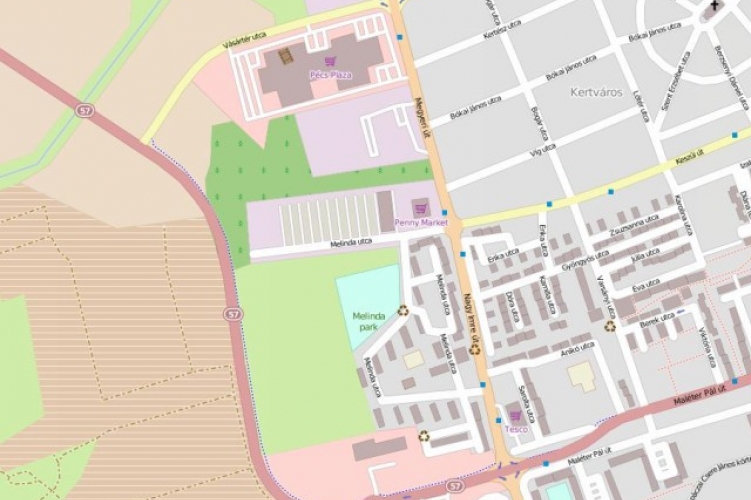 a Pécs Plaza 3. számú kapu – Vásártér utca – Megyeri út – Nagy Imre út – Pellérdi út melletti kerékpárút – Nyugati elkerülő út melletti kerékpárút – Vásártér utca – Pécs Plaza 3. számú kapu (Plaza parkoló) útvonalon, az utcák menetirány szerinti jobb oldali forgalmi sávja.