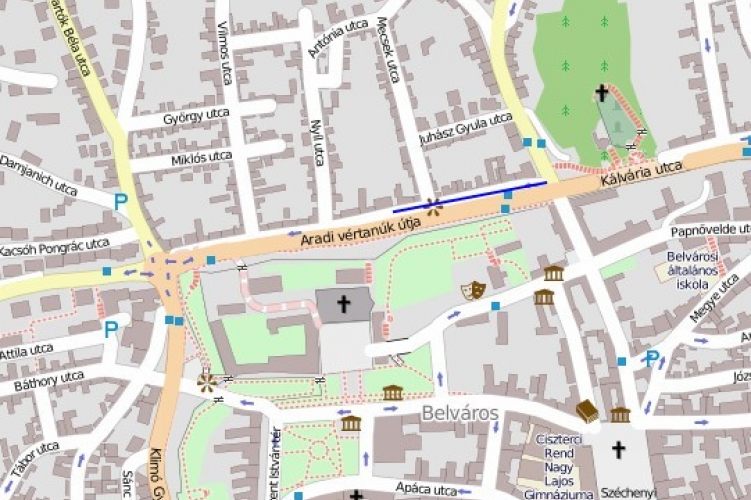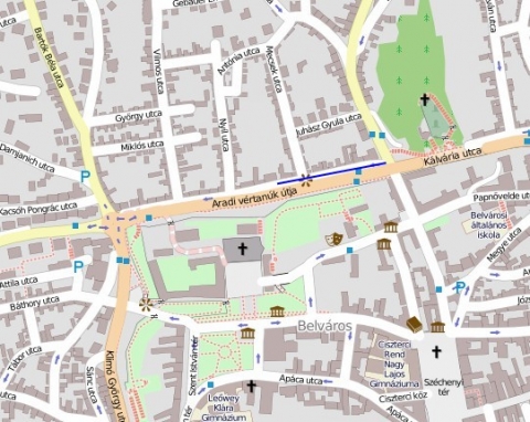 az Aradi vértanúk útja északi szobor sétányának menetirány szerinti bal oldalán az Aradi vértanúk útja 12. számtól az Aradi vértanúk útja 20. szám közötti szakaszon.