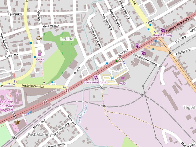 - a 66-os főközlekedési út Komlói út 68. számtól az Auróra utca kereszteződéséig Komló irányába