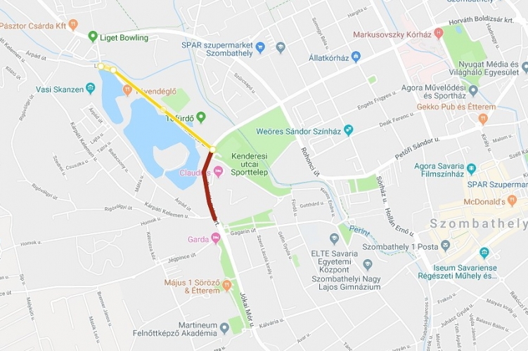 - Szombathelyen a Liget utca és a Kenderesi utca kereszteződésénél.