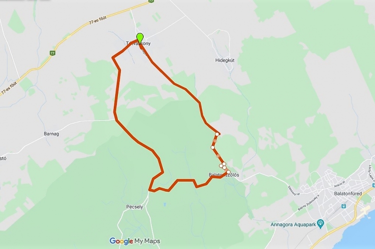 Tótvázsony, Magyar utca (rajt) – 7304-es számú út - Balatonszőlős – 7338-as számú út - 7307-es számú út (Pécsely) – Tótvázsony, Magyar utca.