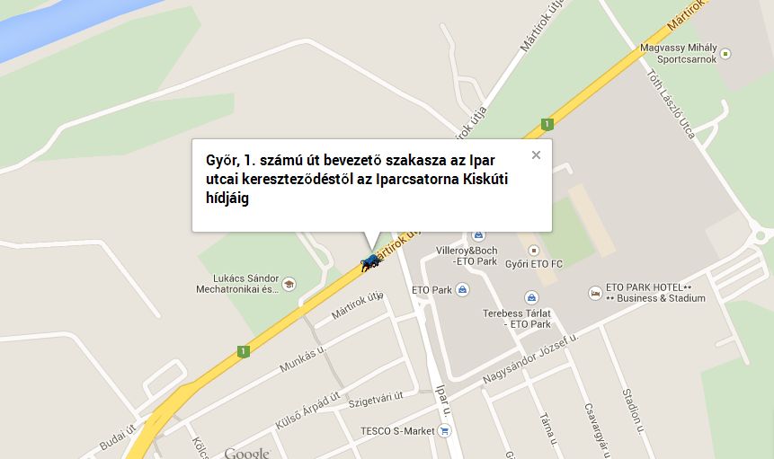 - 1-es számú főút bevezető szakaszán a 123-as kilométer szelvény és 123+700-as kilométer szelvény közötti útvonalon