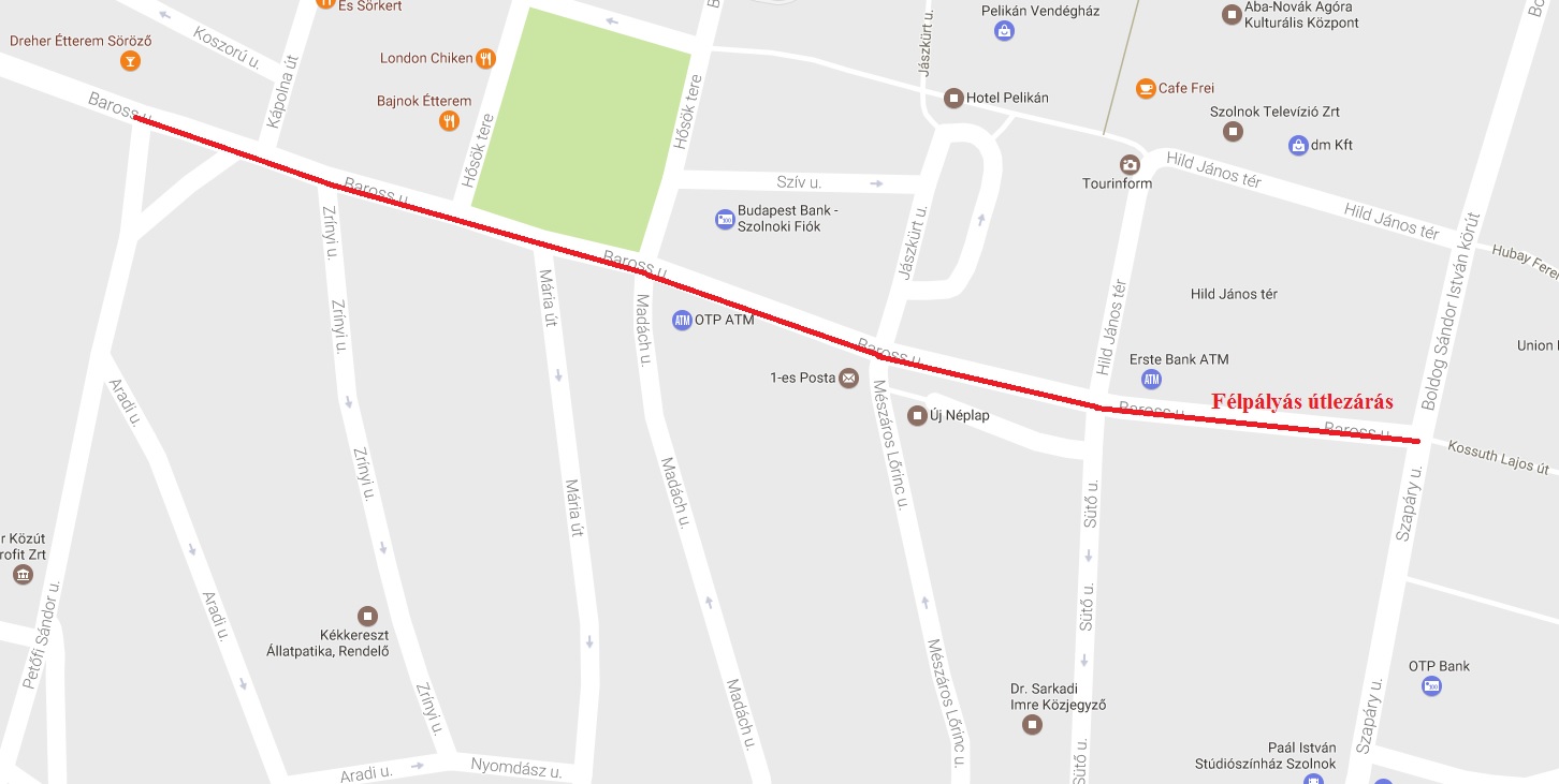 Félpályás útlezárásra kell számítani a közlekedőknek 2017. március 15-én 9 órától 9 óra 30 percig Szolnokon, a Baross úton, a SZMSZC Petőfi Sándor Építészeti és Faipari Szakgimnáziuma és Szakközépiskolájától a Kossuth térig tartó útszakaszon.