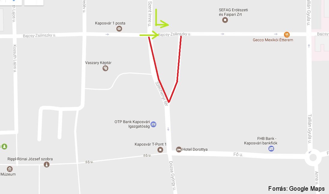 Kaposváron a Széchenyi teret 2017. március 15-én 9 óra 15 perctől 9 óra 50 percig lezárják a forgalom elől, az arra közlekedők a Szent Imre utca és a Bajcsy-Zsilinszky utca kereszteződésénél kizárólag a Tallián Gyula utca felé haladhatnak tovább.