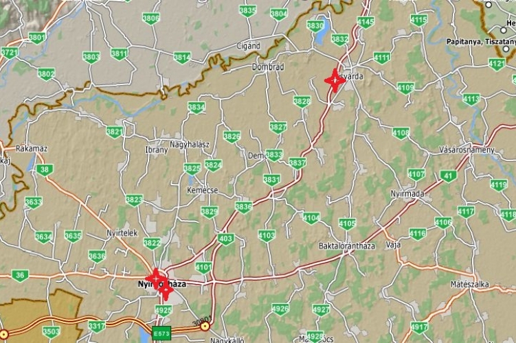 A 4-es számú főúton Kisvárda közelében
