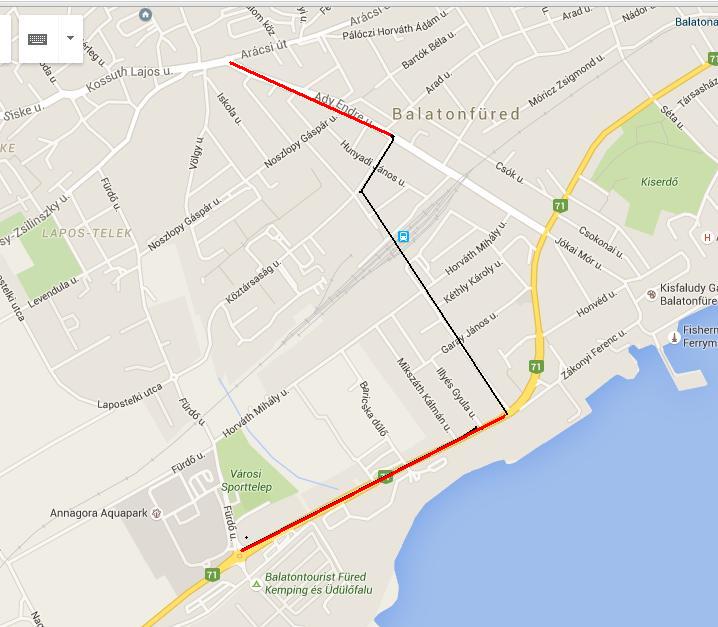 A futóverseny alábbi útvonalat érinti Balatonfüreden: