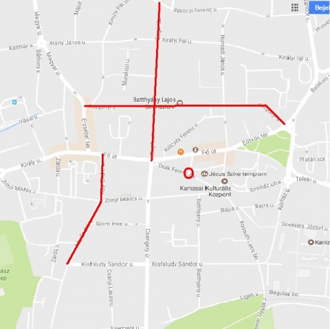 - Csány tér Göcseji útra vezető szakaszán 2017. március 15-én 7 órától 10 óráig és 12 órától 15 óráig,