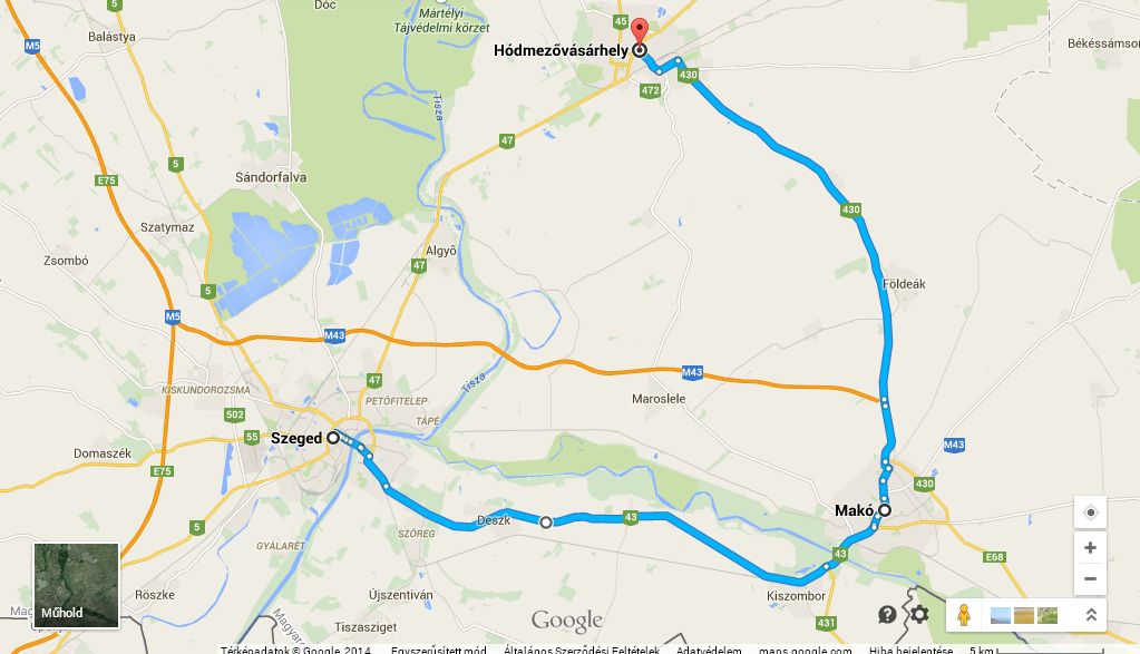 - 2014. december 15-én 7 és 16 óra között a 47-es számú főút 216-217 kilométerszelvénye között, mindkét irányban szorosan az útpadka mellett. Kerülni Makó irányába, a 43-as, 430-as és 4415-ös számú utak igénybevételével lehet.