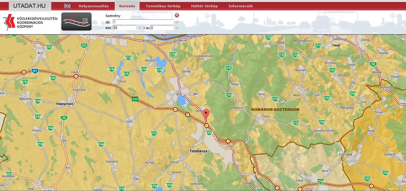 Tatabányán az 1. számú főúton az 58+600. kilométerszelvényben 2014. december 15-én 7 órától 16 óráig,